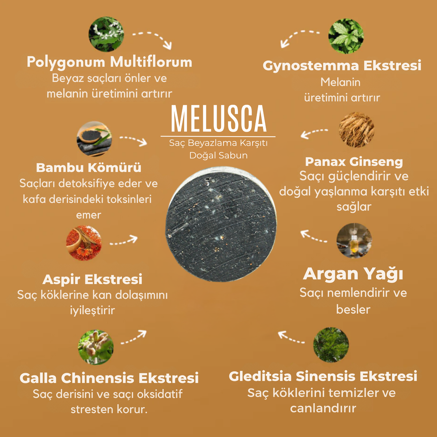 MELUSCA™ Saç Beyazlama Karşıtı Doğal Sabun, saç köklerinizin derinlerindeki pigment hücrelerini harekete geçirerek benzersiz bir yöntemle saçınıza doğal rengini geri kazandırır.